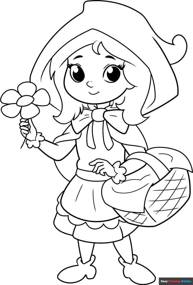 This fun and free printable coloring page features a beautifully illustrated Little Red Riding Hood for kids to color however they'd like!