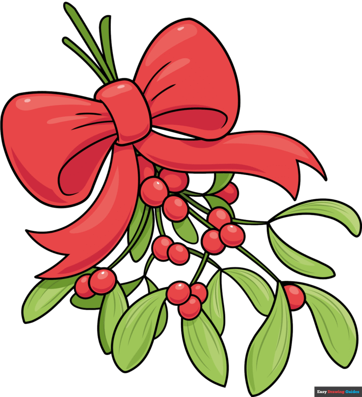 No mistletoe to kiss under? You can remedy that. Draw the evergreen plant with berries and a big bow, then hang it up above.