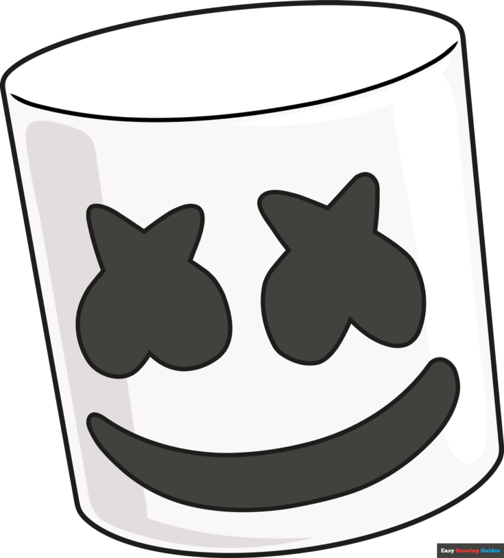 Marshmello's face is a cylinder - the shape of a giant marshmallow! His eyes are thick X's, and his mouth is a wide, curved line.