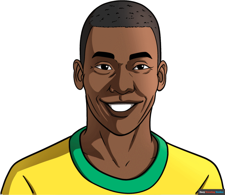 This portrait captures Pelé's iconic smile. He's wearing a soccer jersey. Could you draw a soccer ball in this picture?
