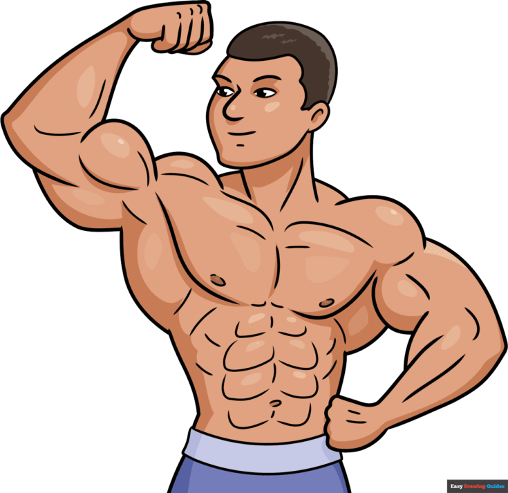 This bodybuilder strikes a classic pose to show off his biceps and abdominal muscles. He's based on famous bodybuilders like Arnold Schwarzenegger.