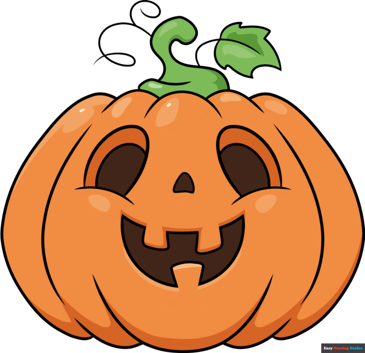 Pumpkins are fun to draw, and there are many on this list. This one has been carved into a jack o'lantern, with sharp, pointed teeth and glowing eyes.